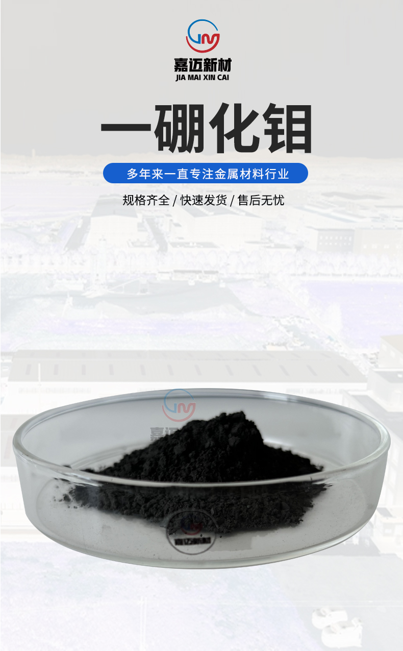 5.硼化鉬熔點(diǎn)在2600℃,可以做耐高溫噴涂層。耐磨性能好,耐熱、電阻與溫度有線性關(guān)系的特種合金,可用于金屬陶瓷、耐磨涂層、高溫電阻、鍋內(nèi)襯、填空噴鍍和耐腐蝕化工設(shè)備,過渡金屬硼化物在技術(shù)應(yīng)用中是傳統(tǒng)硬質(zhì)合金和高硬材料的潛在替代品。并且隨著科學(xué)技術(shù)的進(jìn)步,硼化鉬系化合物的應(yīng)用領(lǐng)域還將進(jìn)一步被拓展,這種材料將展現(xiàn)出更加優(yōu)良的應(yīng)用價(jià)值和巨大的市場(chǎng)前景。